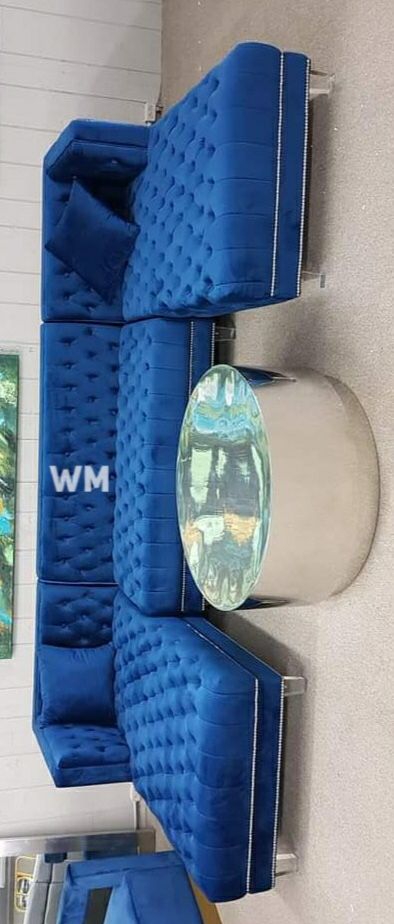 Prada Blue Velvet Double Chaise Sectional & Couch & Living room set( ♥️Silver and Black colors option