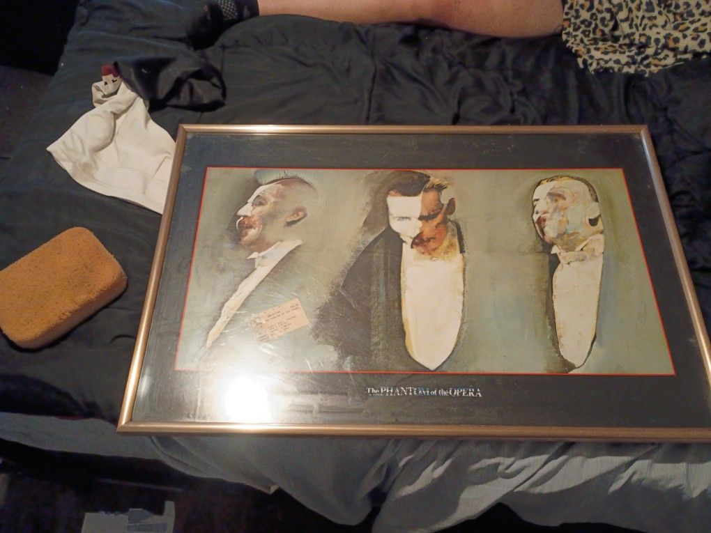 This is a framed poster print of the painting "I'm Here, I'm Here, I'm Here" by artist Robert Heindel, created for the 1986 production of Andrew Lloyd Webber's The Phantom of the Opera.