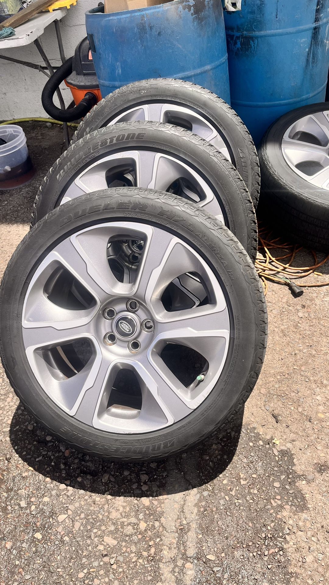 A complete set of 21 inch Land Rover wheels and tires comes complete with TPMS sensors a couple of the tires are not great and a few of the rims have a skuff or two but still a pretty nice set