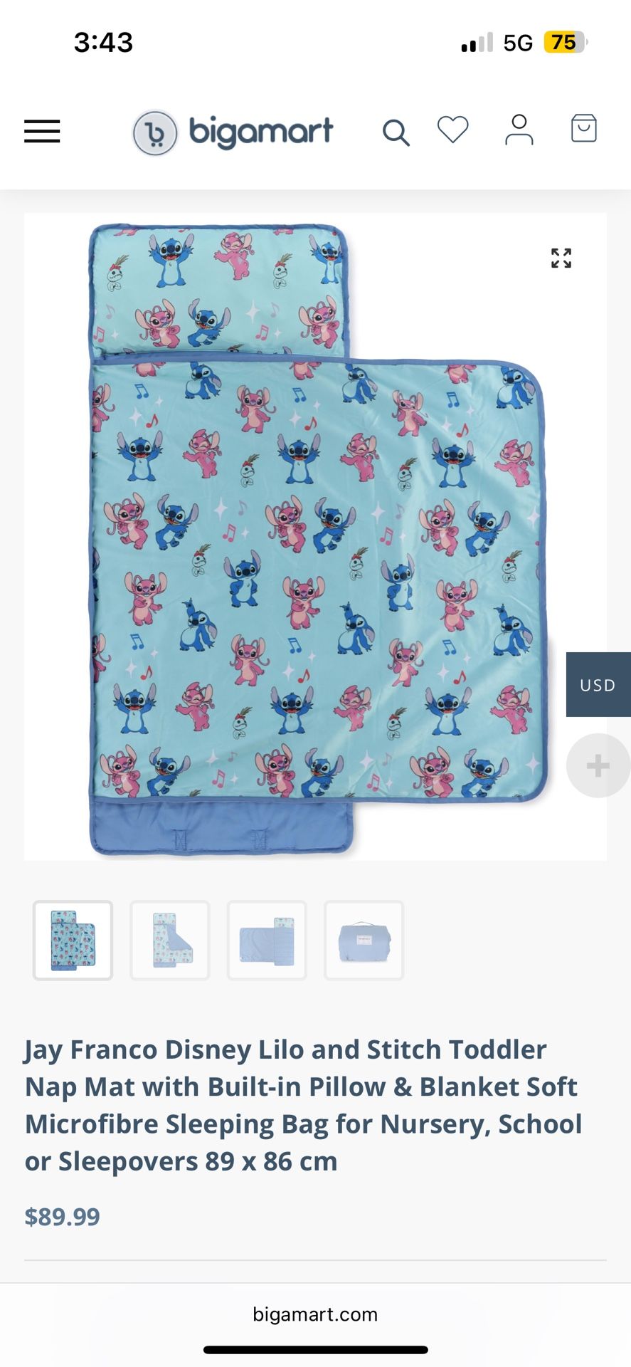 ICONIC DESIGN: Featuring the beloved Stitch, this official licensed Disney nap mat combines functional and fun, making nap time or playtime extra special for your little one. SOFT & COSY: Made from ultra-soft microfibre, this 117 × 51 cm sleeping bag includes a built-in 51 x 24 cm pillow and a snug 89 x 86 cm blanket for ultimate comfort. Perfect for toddlers and young children who love a cosy cuddle at nap time or bedtime. EASY CARE: The entire sleeping mat is machine washable, making it quick and simple to keep clean and freshready for your little one’s next nap or playtime. PERFECT GIFT FOR KIDS: This children’s sleeping mat makes a lovely personalised gift, complete with a built-in name labelideal for nursery, sleepovers, or cosy naps at home. FUN & FUNCTIONAL: With its bright, colourful design and handy carry handle, this nap mat offers both comfort and conveniencean essential for any childs naptime routine.