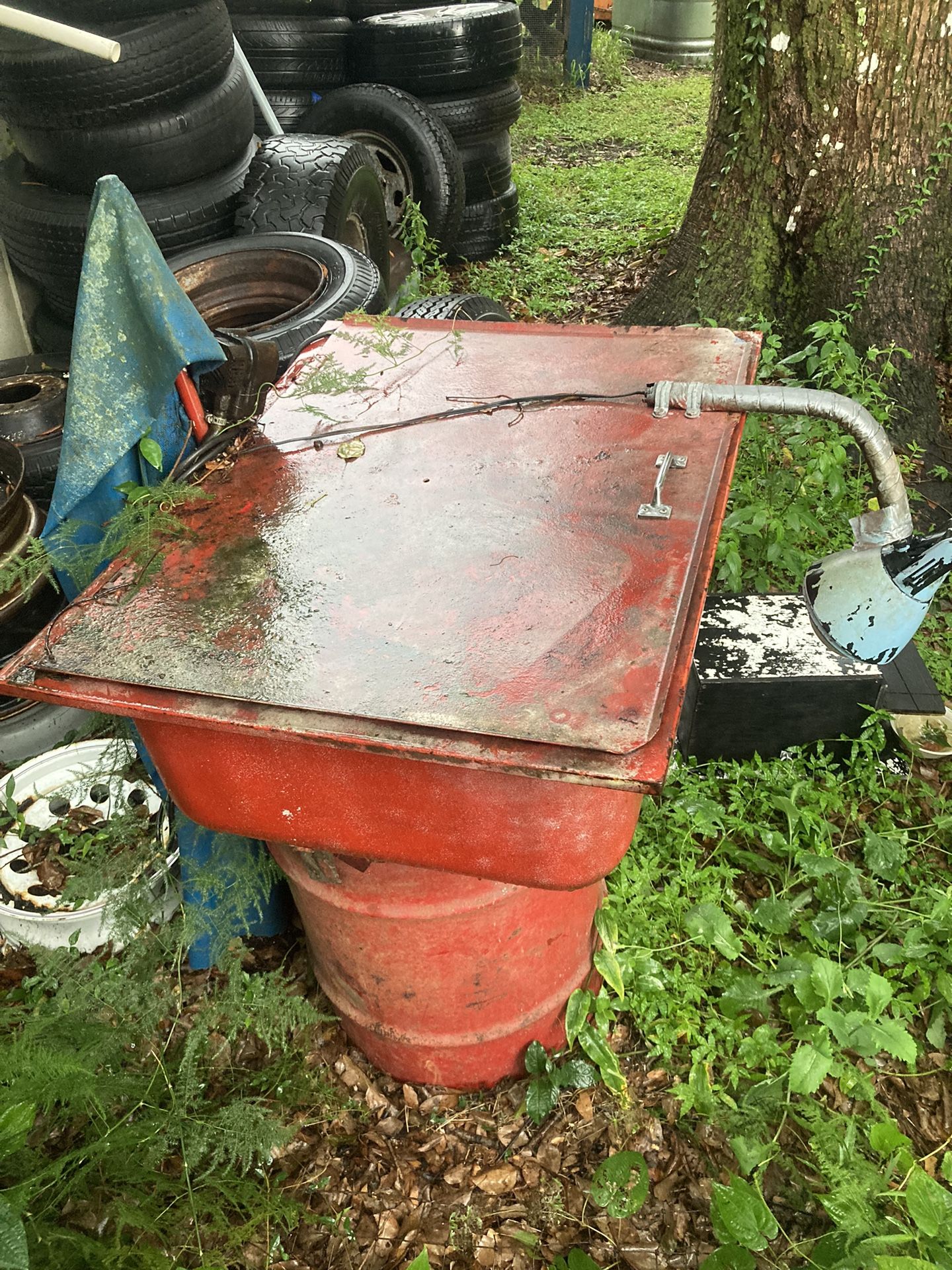 Solvent rated, cleaning compartment is deep allowing for a pretty good range of what can fit inside. Comes with a working pump.