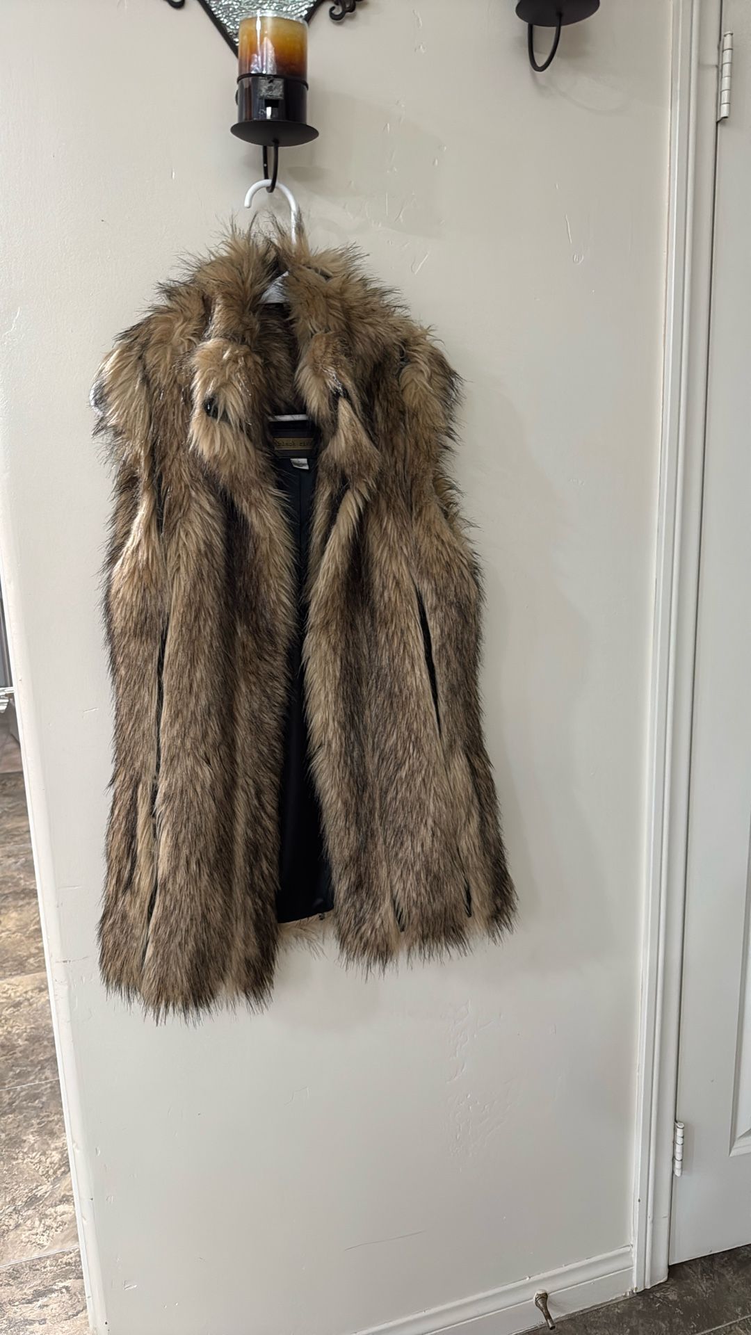 This fur vest is from black rivet and it’s a size Small I’ve only worn it once and it was for barely an hour. It’s very nice fur and I need to get it gone because it’s to big on me