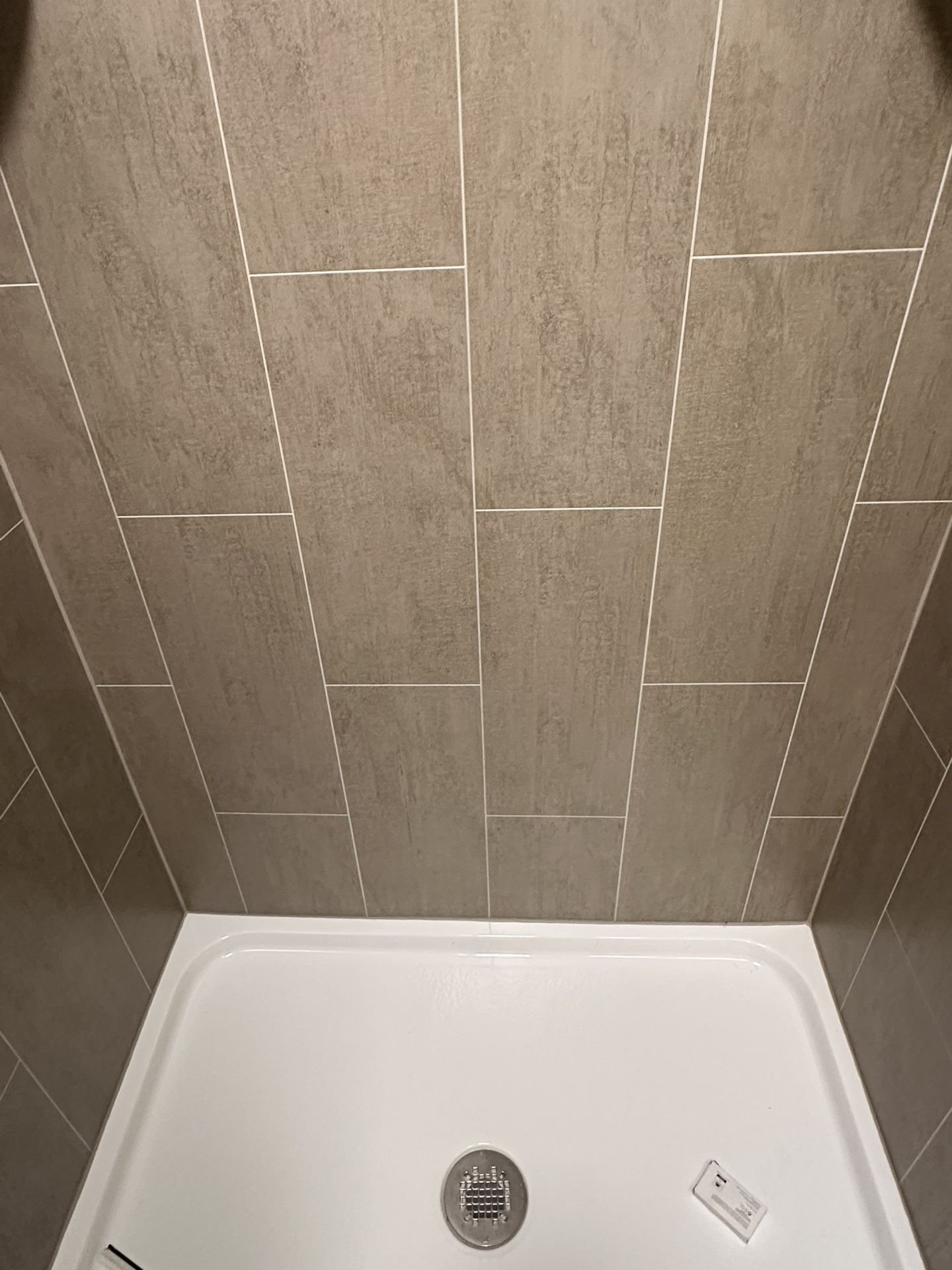 Remodeling your bathroom - over order of shower walls . 32 x 32” , shale grey by Main & Craft model ; Jet Coat. New!