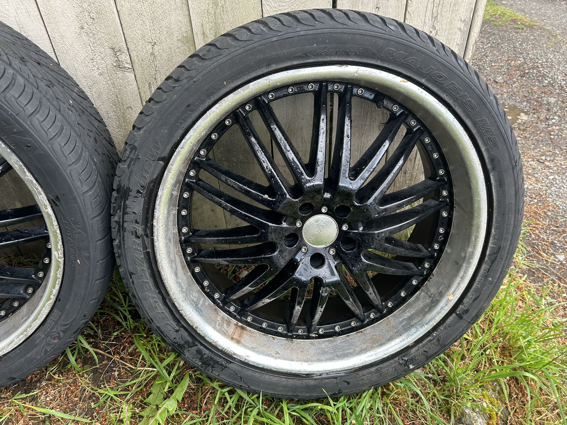 I have a set of 4 22in universal rims with three good tires, one bad tire for sale asking 700