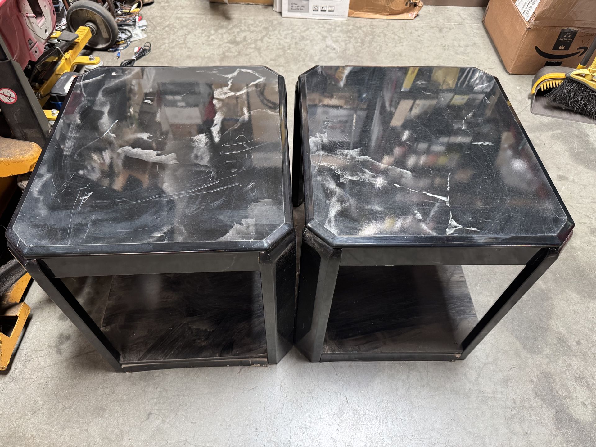 I have two used sofa end tables with marble style pattern. There are in decent condition which serve the function, just need some cleaning / dusting. Dimension is 20”x18”x20” Perfect for the sofa end or stands for printer / office equipment. Must pickup both together.