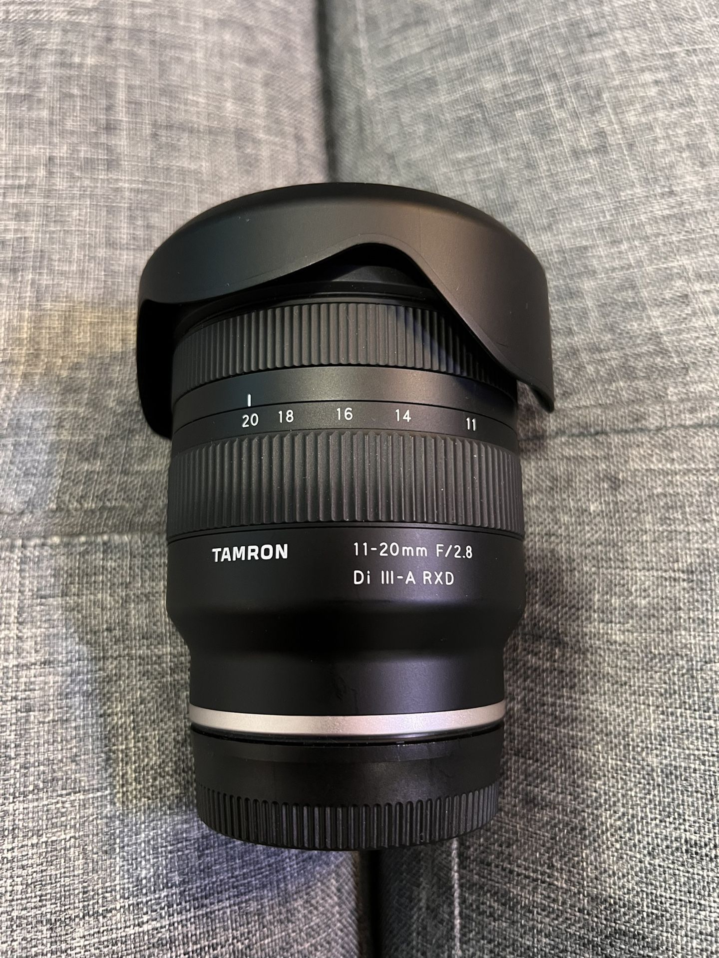 Tamron 11-20mm for Sony APSC Lens In great condition. No scratches on glass. I still love this lens but I’m planning to upgrade. Nice for vlogging and close portraits. One of the best lenses out there to have for sure! Comes with lens caps and lens hood.