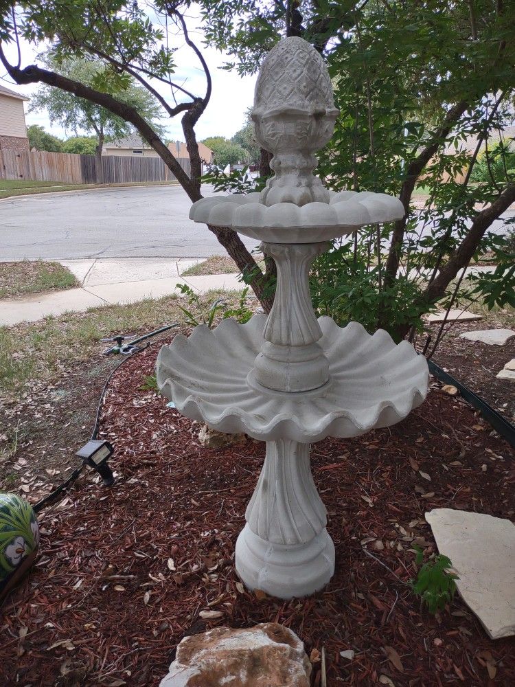 Seashell Fountain measures 4ft tall. Made of concrete. Great landscaping accent. Delivery available pools, ponds, statuary, concrete art, birdbaths, pottery, vases, landscaping, lighting, tables, benches, appliances, decor, patio, pavers, river rock, flagstone, cement, stone, Furniture, ambience, waterfall