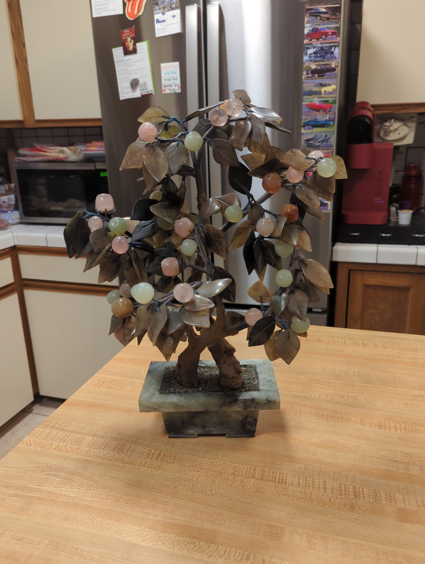 18 inches tall, 14 inches wide, 10 inches deep, quite large, jade planter, and jade and stone fruit