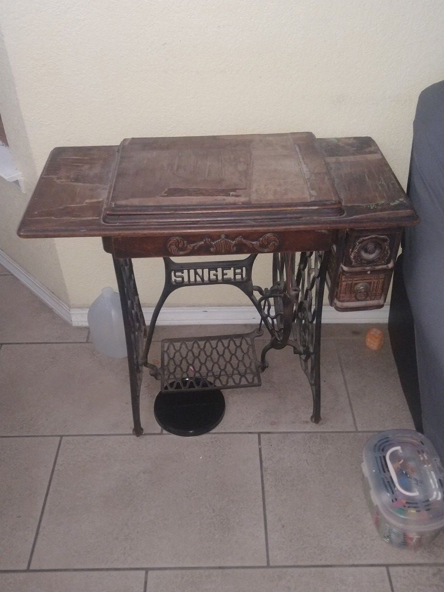 Antique Singer Sewing needs some work on the wood finish but is working extra parts for the sewing machine provided low ballers will be ignored