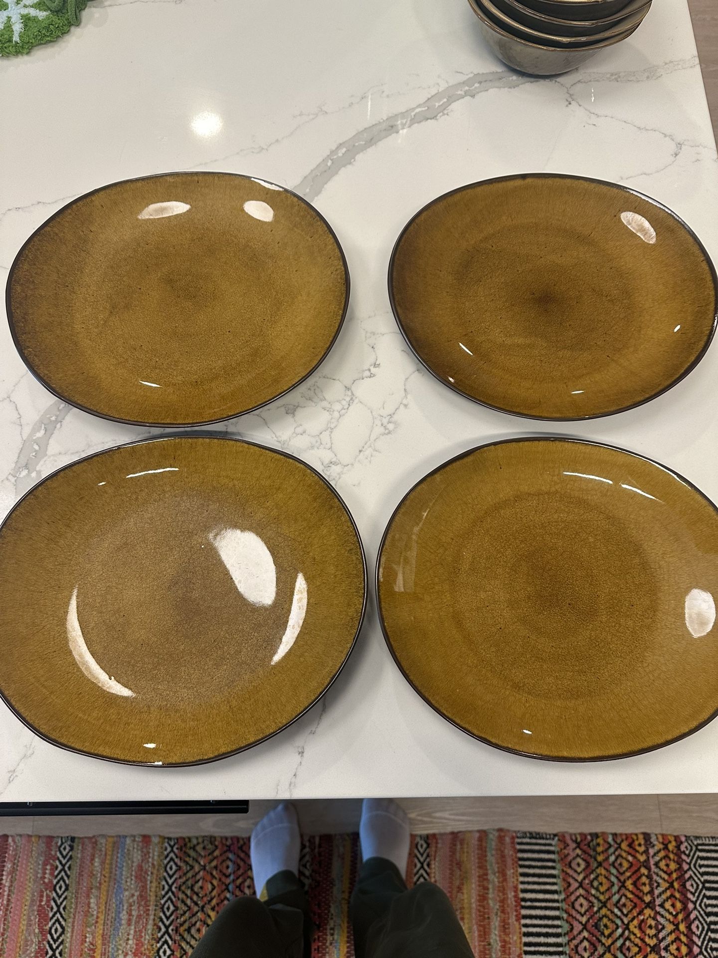 Four dinner plates from Pier 1 with no chips. Beautiful for fall and matching bowl set also available for additional $10 for all four.