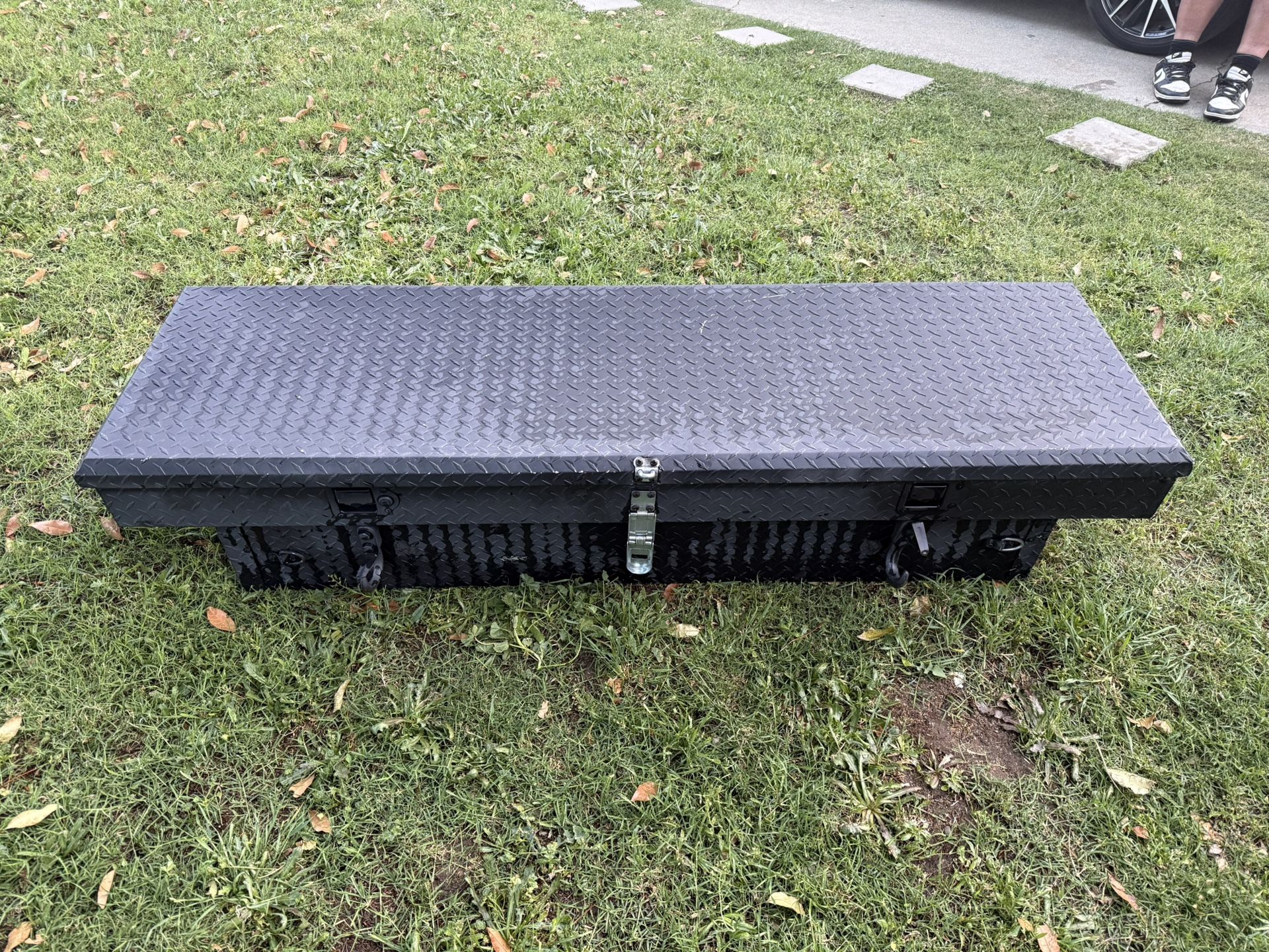 Selling a tool box for back of truck Dimension: 58 inches 1/4 wide to 69 inches 1/4 wide (long) 14 inches deep (height) 21 inches wide It has mounting hardware. Really good condition. Serious buyer please. Thank you. $130 or best offer.