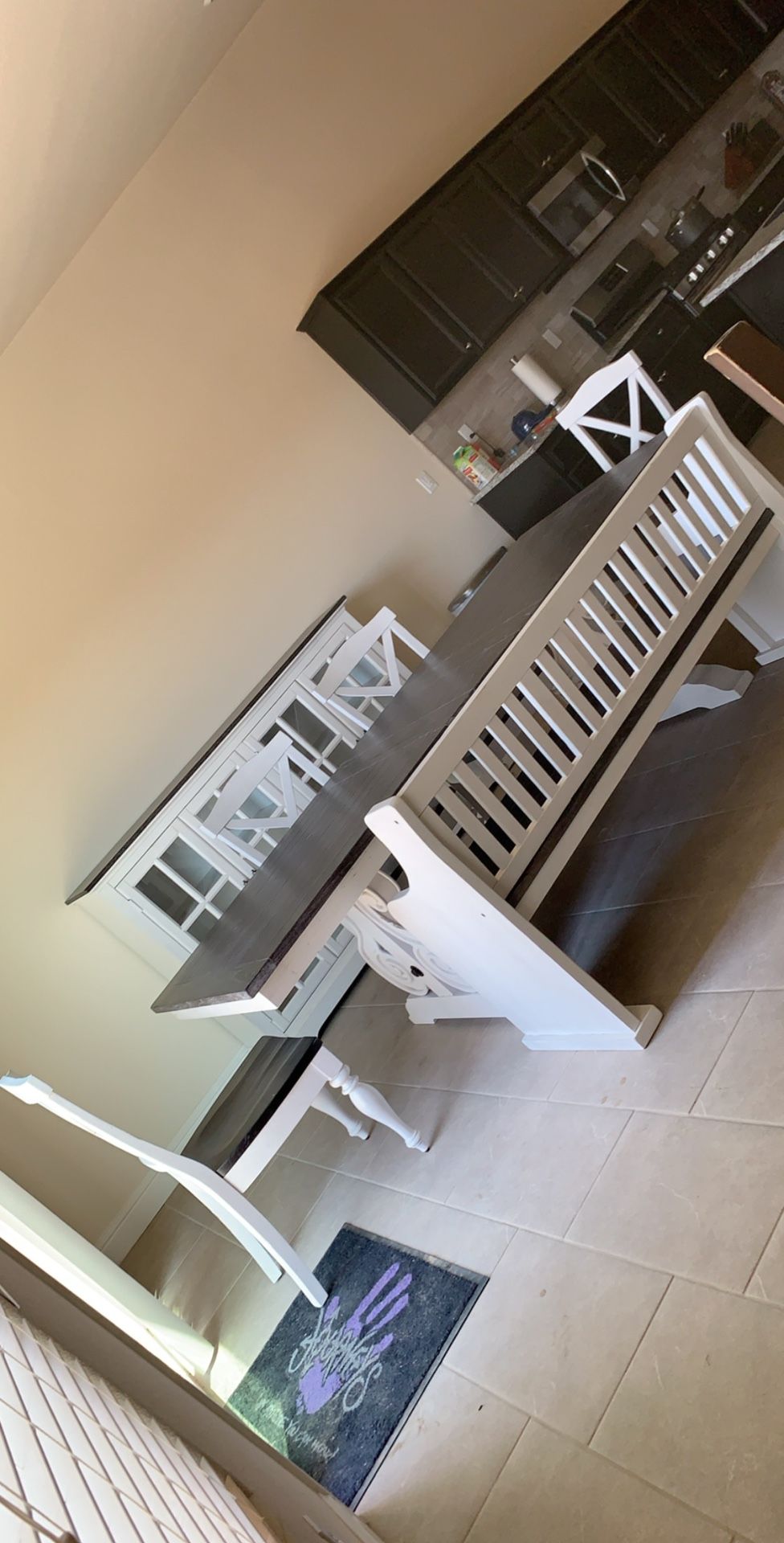 Dinning table with server. 4 chairs and side bench. Server (Cabinet) in the back is for storing dishes and other nice place sets. Table is in good condition. Table is in storage and will have to pick up there. Asking $600 OBO