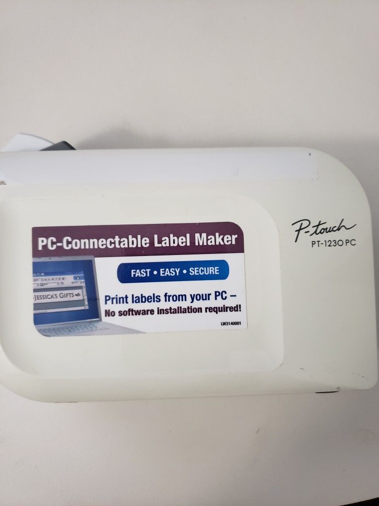 Brother P-Touch Label Maker PT-1230pc Runs on 3 AAA batteries No adapter included. 35% white label remaining. Work with Laptop to design and print.