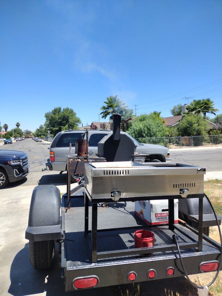 I have a custom-made barbecue trailer / bbq cart on a really good trailer it has a smoker heavy duty good it also has a removable flat grill griddle with two food warmer trays it has a Santa Maria on it the other smoker I removed it and put a Santa Maria grill trailer is not registered it's a custom-made trailer out of a harbor freight trailer I do have the VIN number but never registered it everything works on it if I register it price goes up asking $,4000 TRADE FOR A GOOD RUNNING TRUCK NO JUNK!!