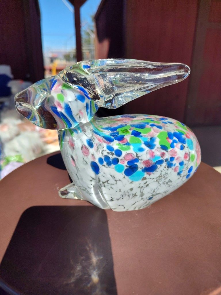 Hand Blown Multicolored Confetti Art Glass Rabbit Figurine/Paperweight