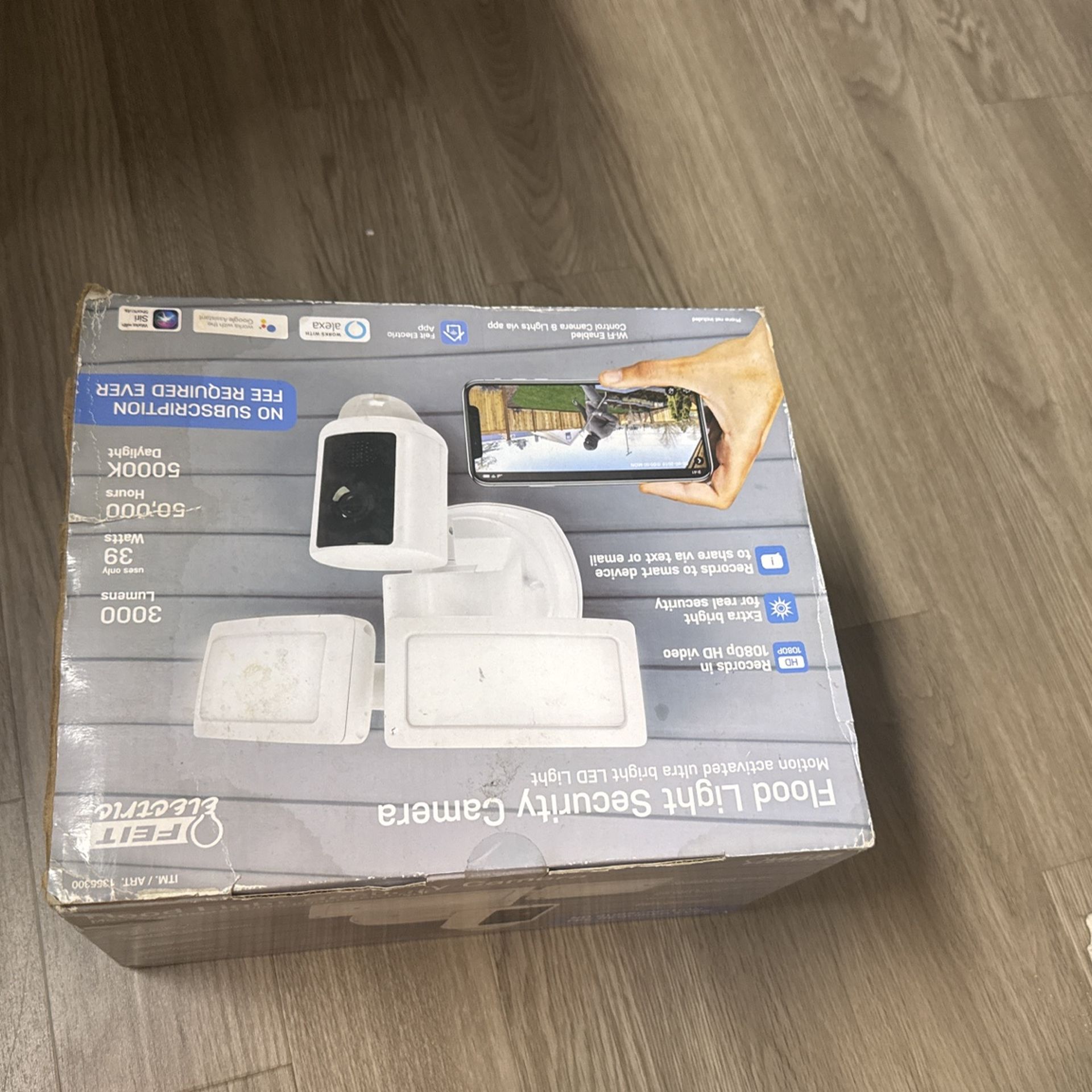 Item is brand new and factory sealed. Feit Electric LED 1080P HD Smart Flood Security Light