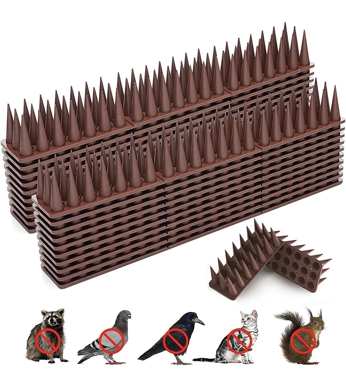 Bird Spikes, 20 Pack Pigeon Deterrent for Small Birds Raccoon Cats Defender for Outside to Keep Squirrel Away, Plastic Fence Spike for Railing and Roof-Brown