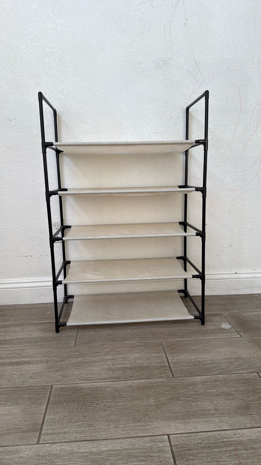 Shoe rack in good condition. Clean, sturdy, and holds multiple pairs of shoes. No damage. Works great, I just don’t need it anymore. Pickup only. Cash preferred.