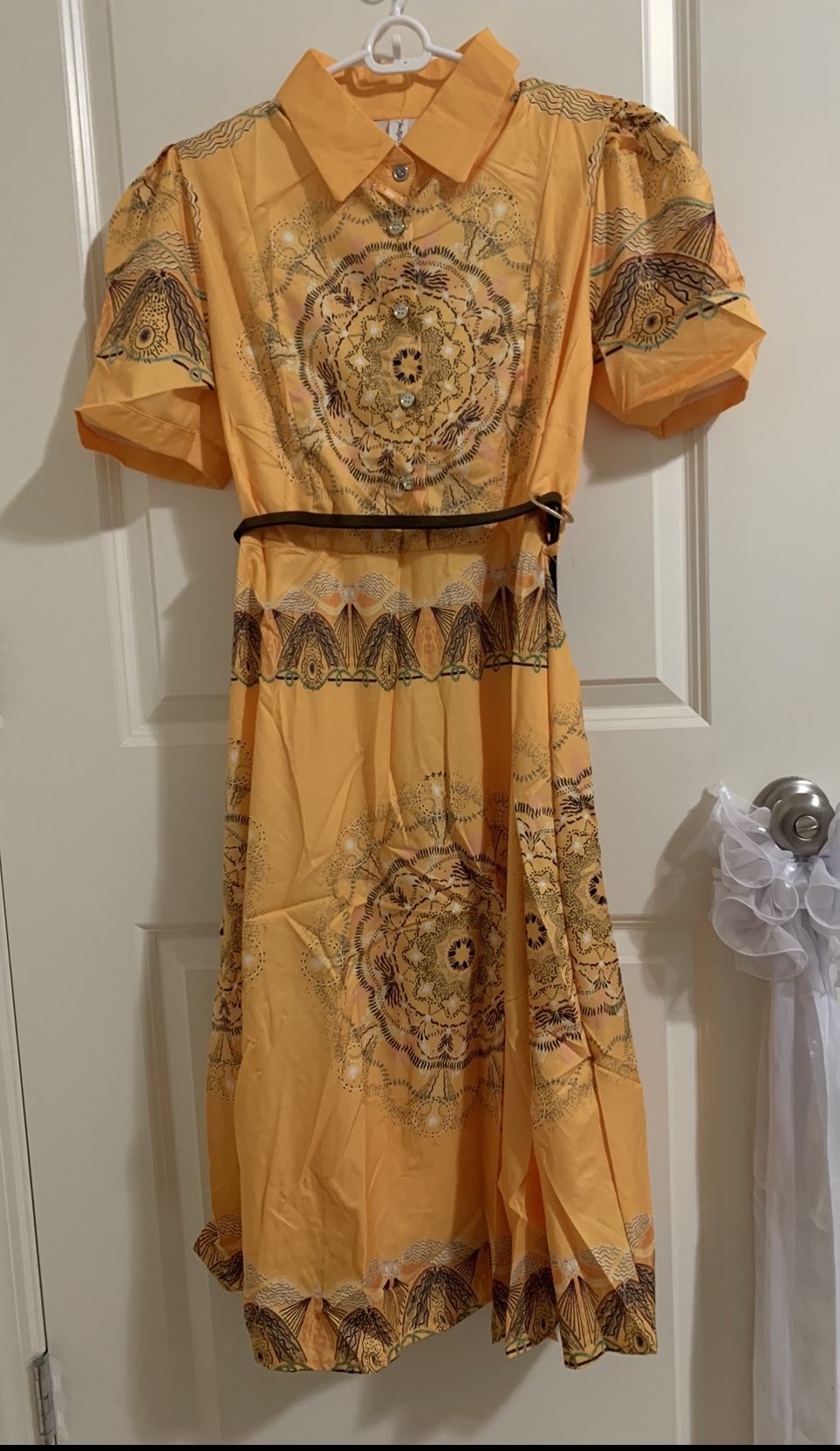 Long Yellow Short Sleeve Dress w/ tied belt. Medium Thank you for visiting my page and be sure to check back often as items will be posted daily. I truly appreciate your support!❤️