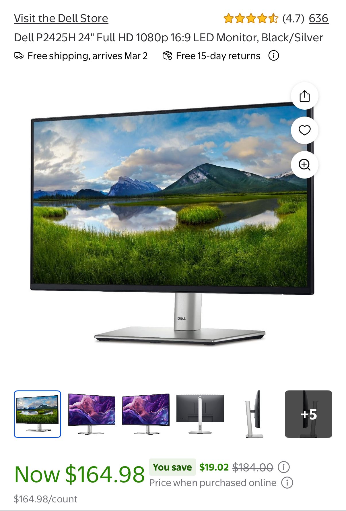 New Dell P2425H monitor. This is a 24 inch Full HD 1080p display. Comes with the stand and all necessary cables. Still in the original box, only used once. I have one more of the exact same monitor, let me know if you are looking for dual monitor setup, I can sell both Pickup only Cash or Zelle only