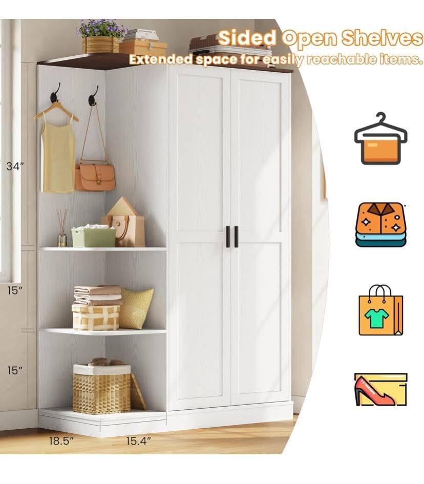 New Wardrobe Closet, Modern Bedroom Armoire with 5 Shelves, 2 Doors, Large Wooden Closet Cabinet, Freestanding Clothing Storage Cabinet, White $199 in box or $230 assembled. Multiple in stock. Pick up in Fontana, delivery available for small fee. I take zelle. Check out my other listings for more deals 🤝