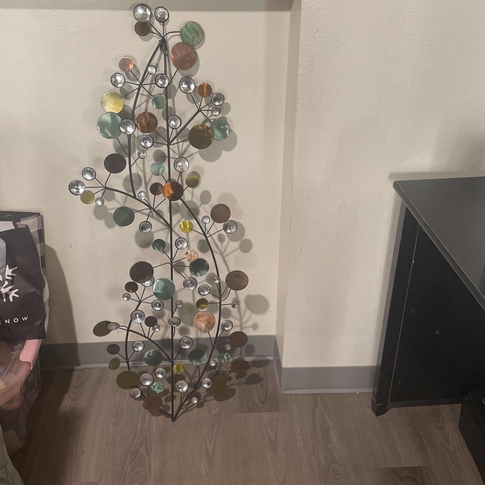 Hanging metallic wall decor. 43”x16” copper, bronze, crystal.