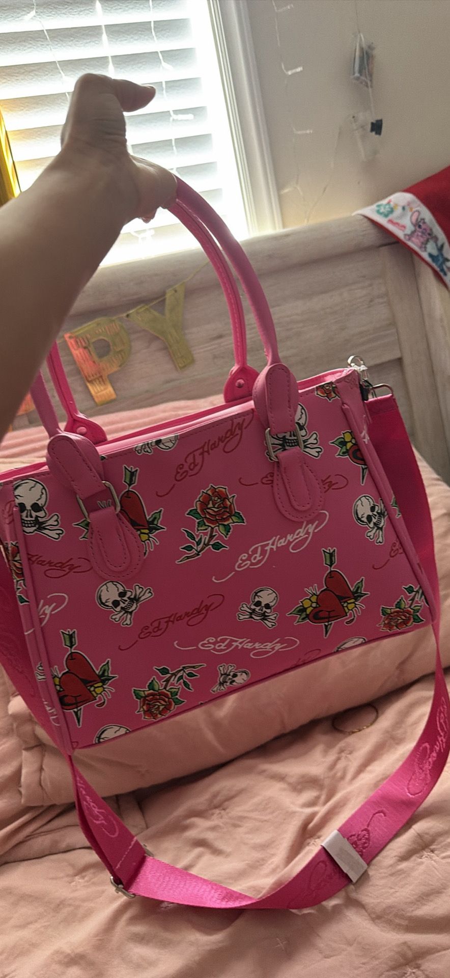 Brand new with tags Pink ed hardy lunch tote bag with rhinestones and with thermal lining