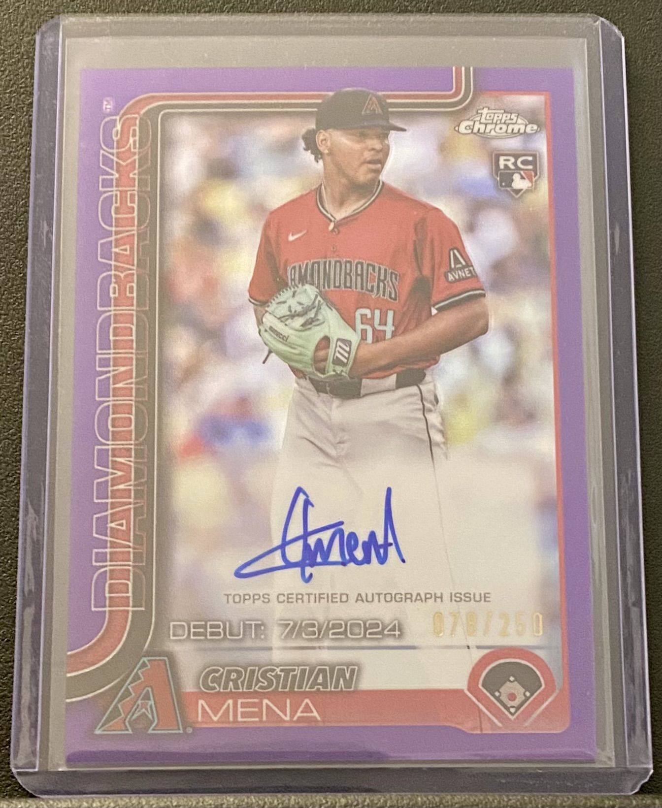 2025 Topps Chrome Update Cristian Mena Rookie Debut Auto Purple Refractor 78/250