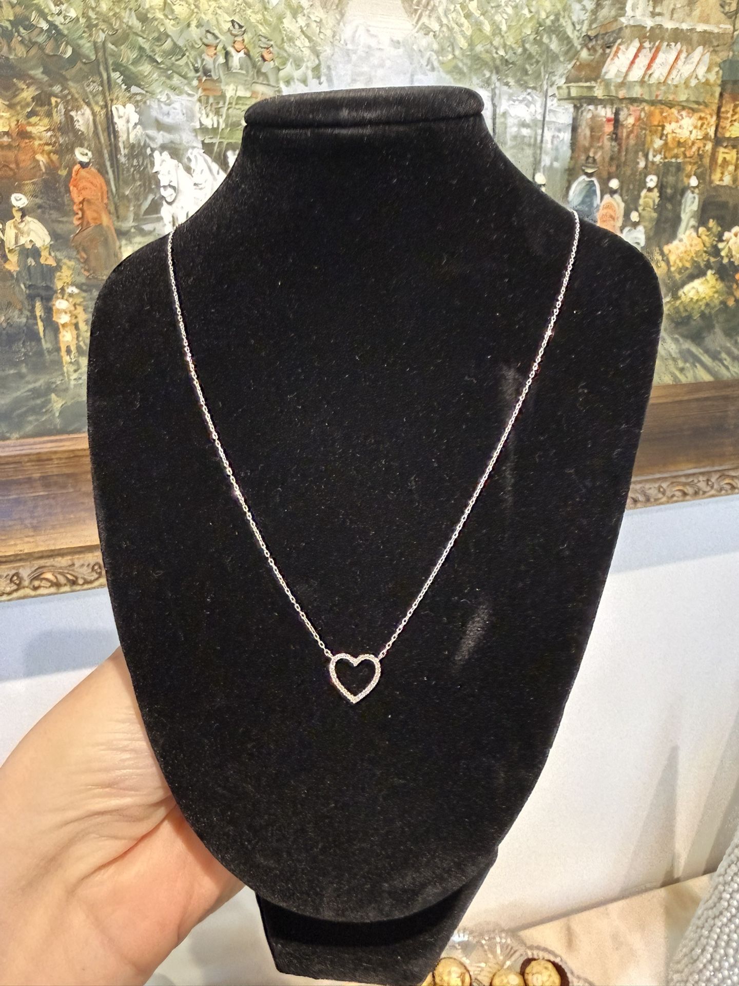 10K White Gold Natural Diamonds Heart Pendant Necklace Perfect For Valentines Day