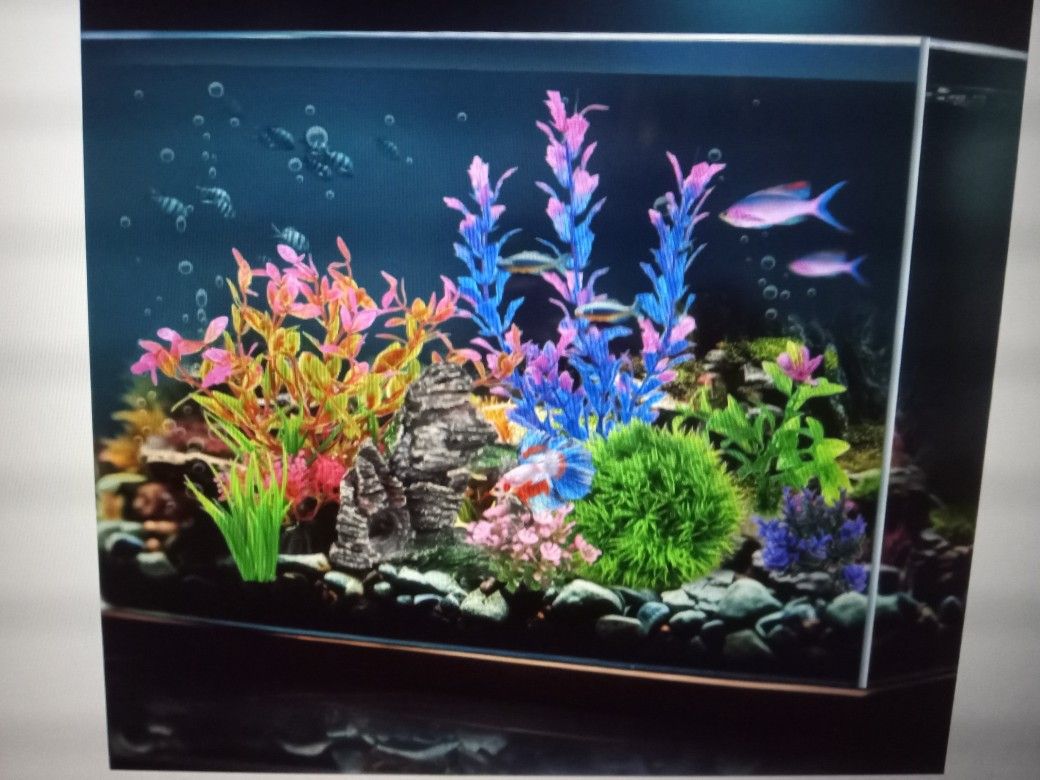 Quiet, Leak-Proof, Ultra-Clear, Rimless Desktop Tank Glass with Heater, Self Cleaning System Efficiency Filter. Contains Bright Light, Plastic Plants, Conditioner, Food, Rocks, Gravel, Cleaning Tool Set and Oxygen Aerator Pump with Air Stone.
