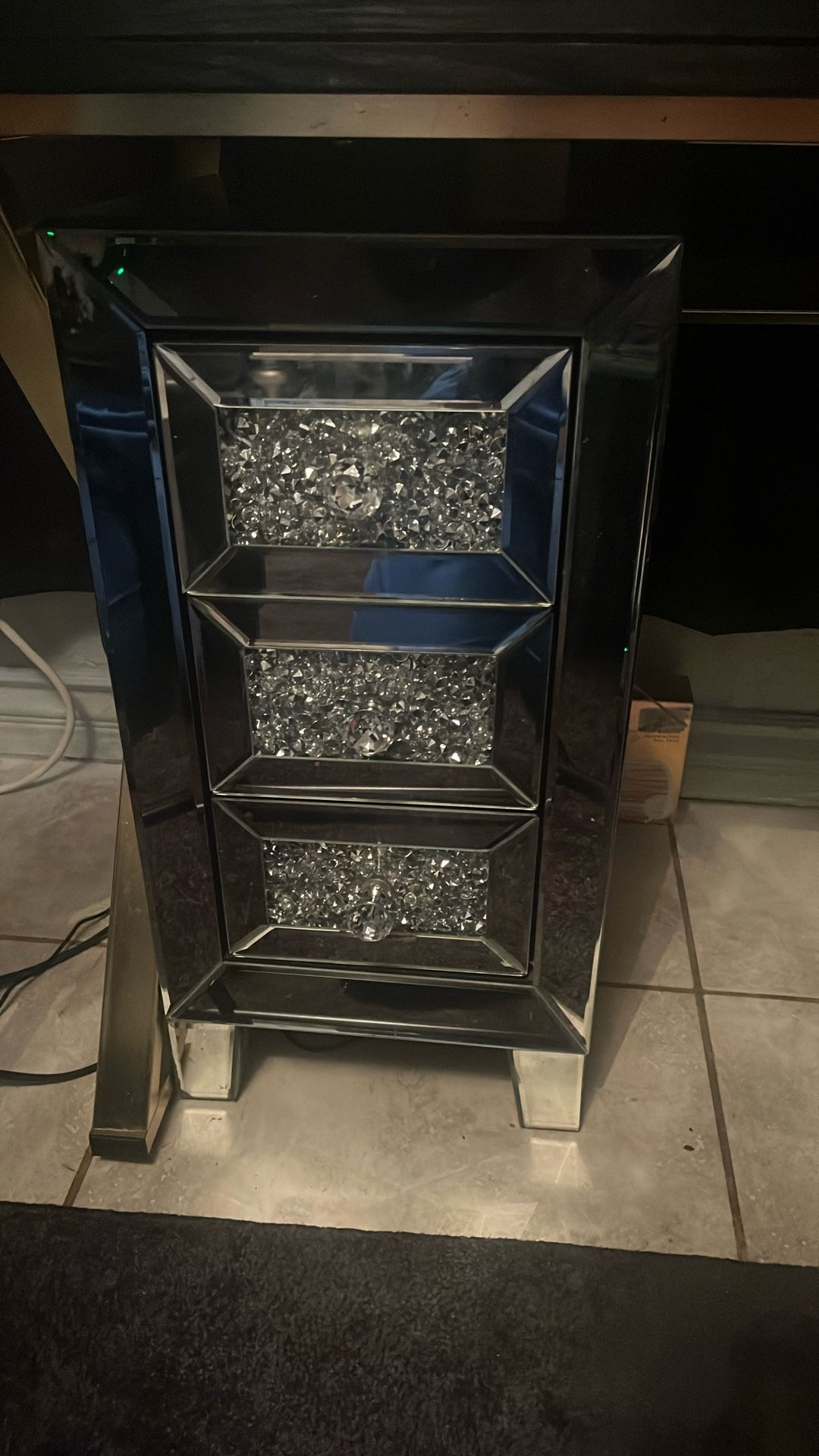 Mirrored nightstands excellent condition a set of 2 they are 1 foot wide 23 inches tall the drawers inside are 9 1/2 inches long by 4 inches deep beautiful set.