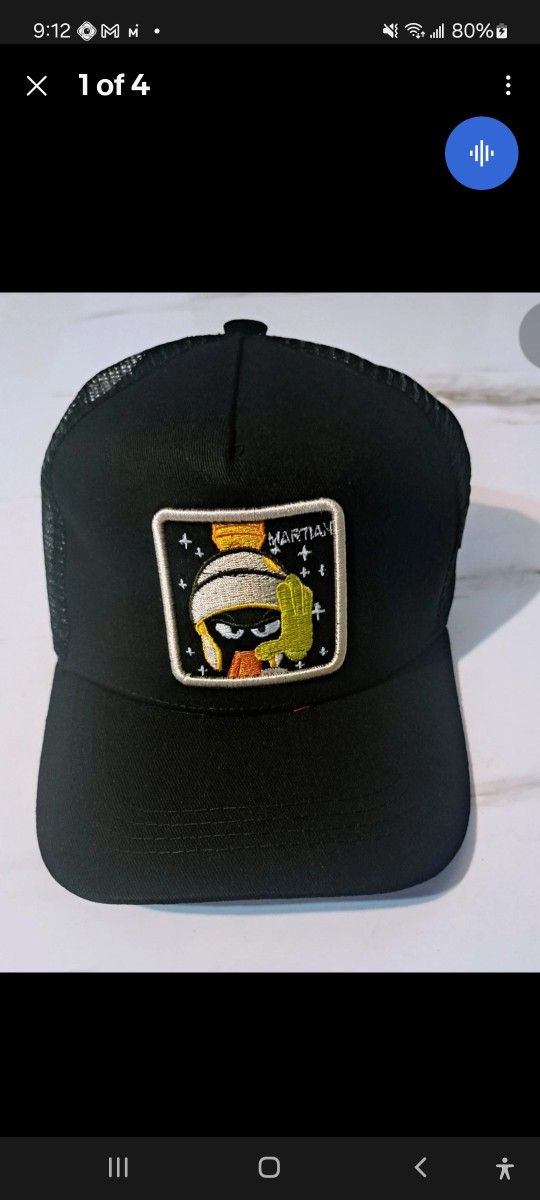 The Looney Tunes Marvin the Martian Trucker Hat is a stylish and fun accessory for men. This black baseball cap features an embroidered design of the iconic character Marvin, making it a perfect choice for casual wear, travel, or parties. Made of cotton with an adjustable size, this cap allows you to customize the fit for your comfort. Show off your love for cartoons with this unique and playful hat from Looney Tunes.