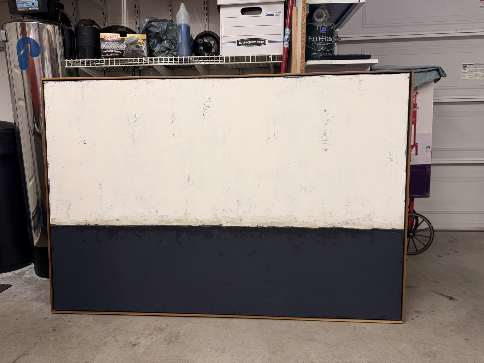 Large Framed Abstract Art – 60” x 40” Beautiful, modern abstract artwork in excellent condition. This is a substantial statement piece with a clean, contemporary look and a high-quality frame. • Overall size: 60” x 40” • Frame: 1” frame on all sides • Condition: Excellent — no damage or issues • Reason for sale: Simply changing out artwork The piece is ready to hang and looks great in a living room, office, or entryway. Nothing wrong with it at all — just redecorating. Let me know if you’d like additional photos or details.