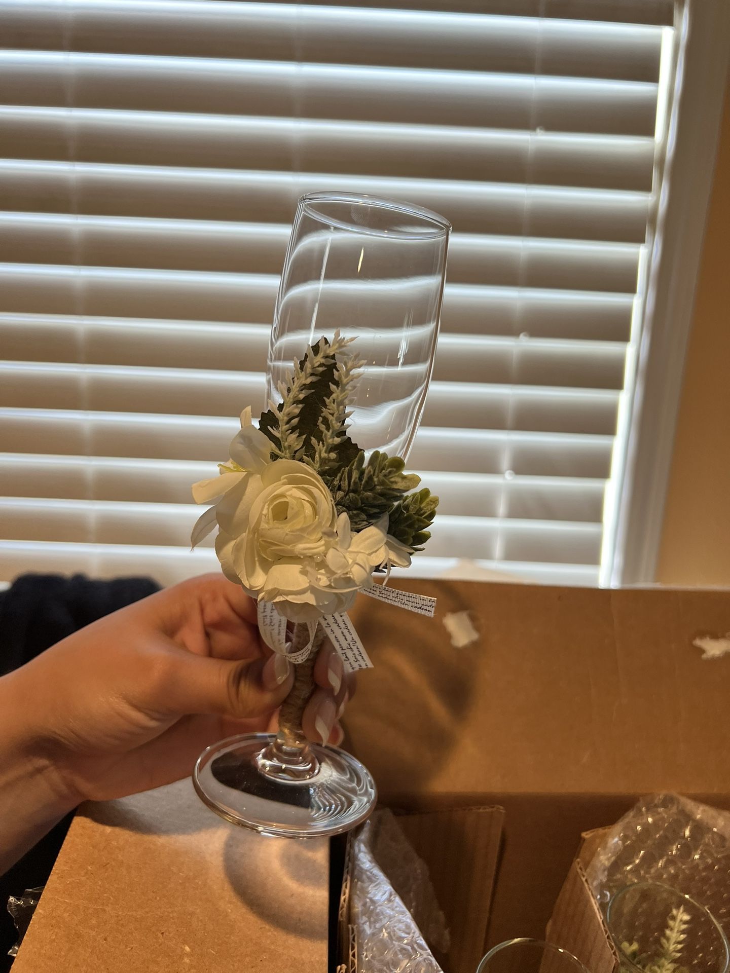 Wedding champagne glasses brand new forgot to use at event opened box