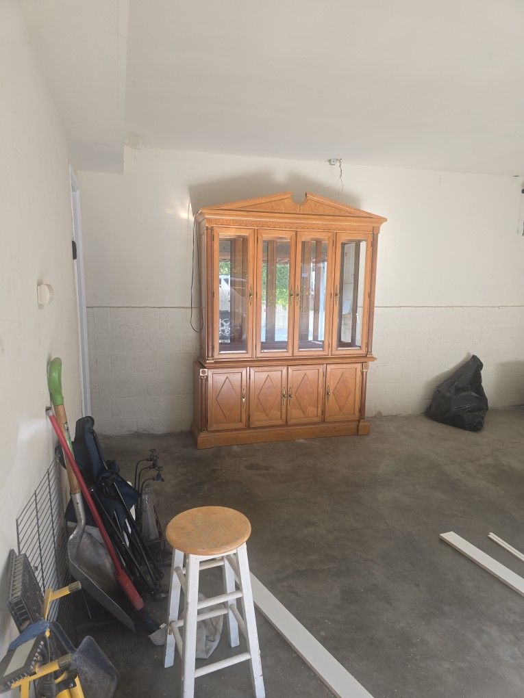 China cabinet with beveled glass doors. Two pieces easier to move very good quality.