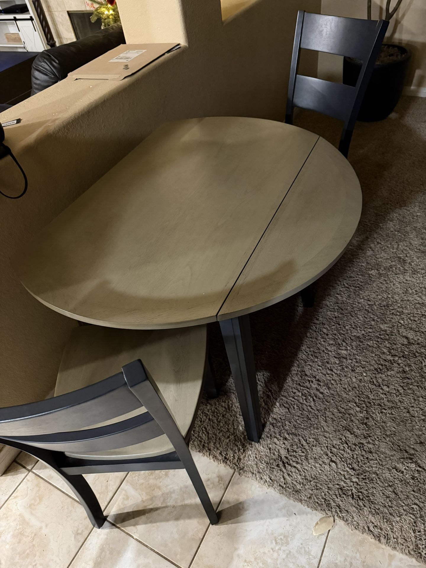 Add charming cottage style with my 3 piece dining set My Blake 3 Piece Drop Leaf Set is the definition of value - casual, cottage style with top-quality and solid construction! Complete with two dining chairs and a drop-leaf table, this set is perfect for small spaces and apartment living! Set includes: drop leaf table and 2 chairs 18"W x 21"D x 40"H