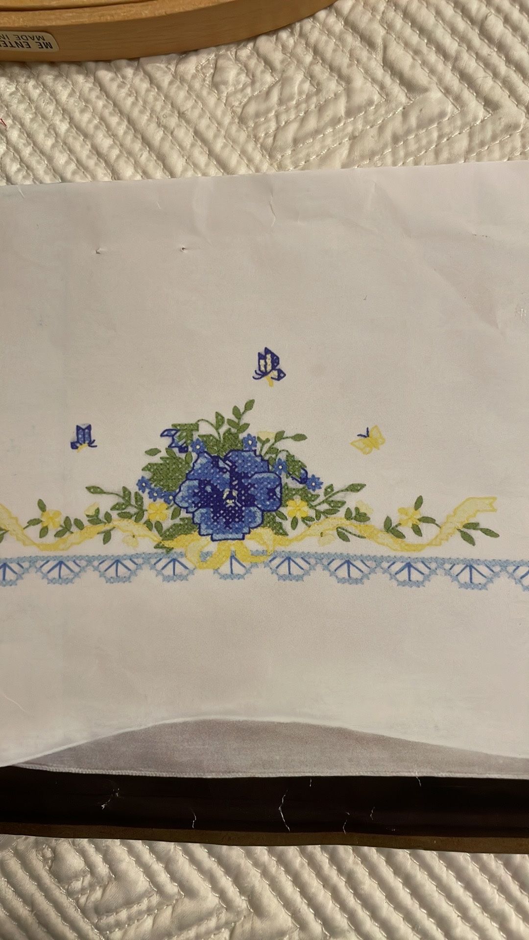 Two kits with 2 pillowcases each. Both are opened but all pieces are there. Both for $15 or as each as listed. Photos 1-4 blue pansy, kit plus hoop & some of the threads required. $10 Photos 5-9 flowers, kit only. $10