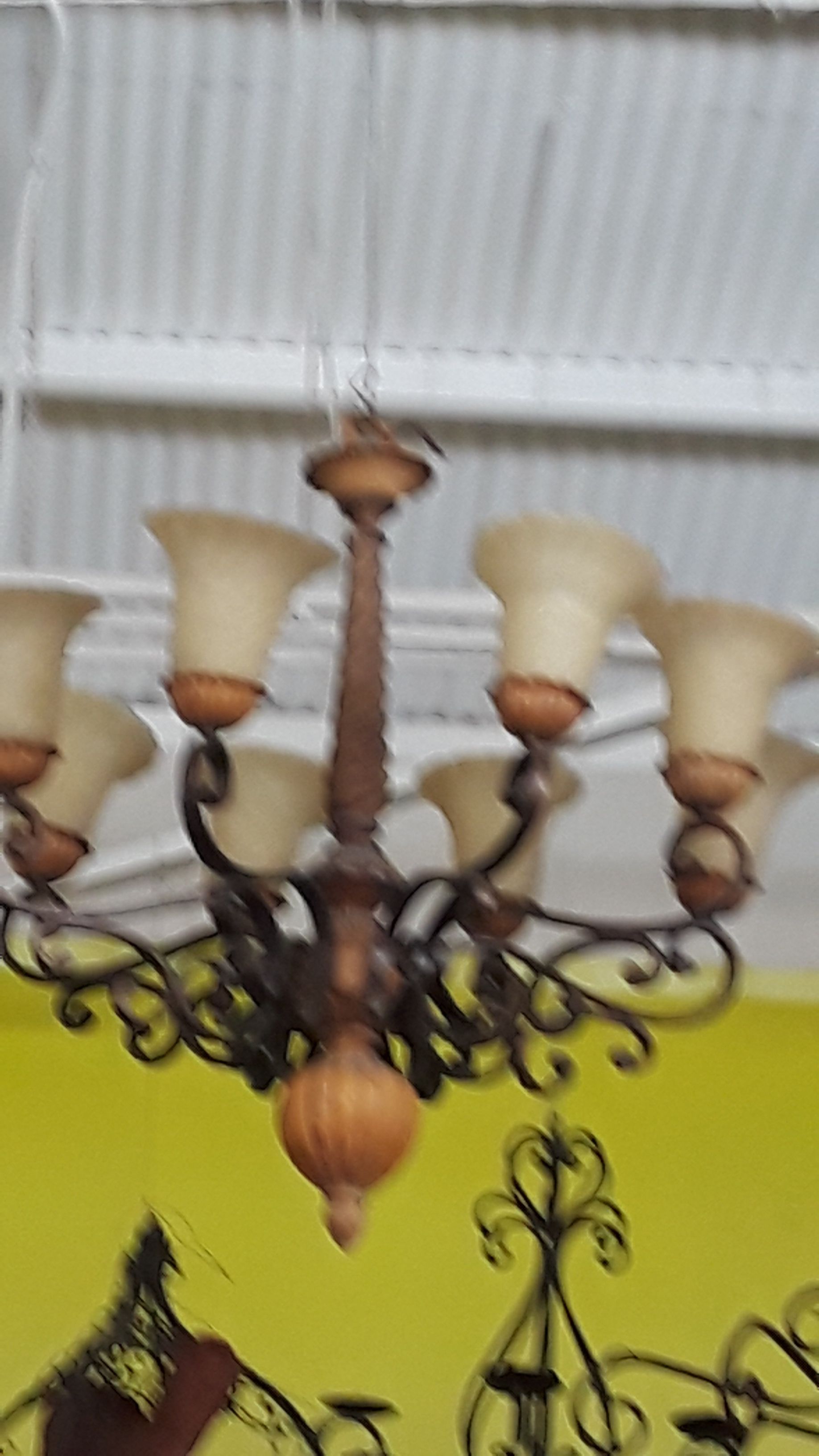 Great chandelier in good condition, great colors all complete , iron ,not heavy not light,great for your new place ,please serious buyers only, all sales are final, no returns, all offers are considered,