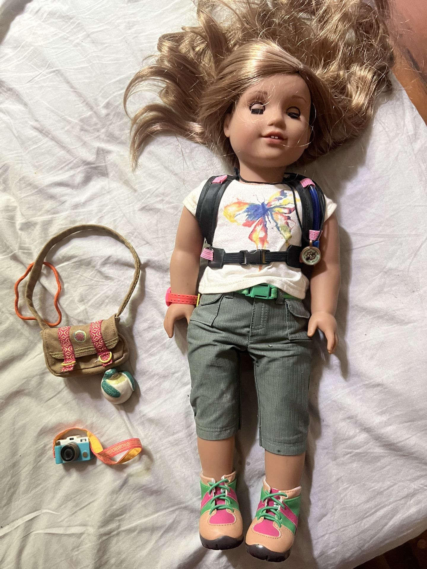 no box . don’t have original clothing just the original turtle in shell , purse and camera .