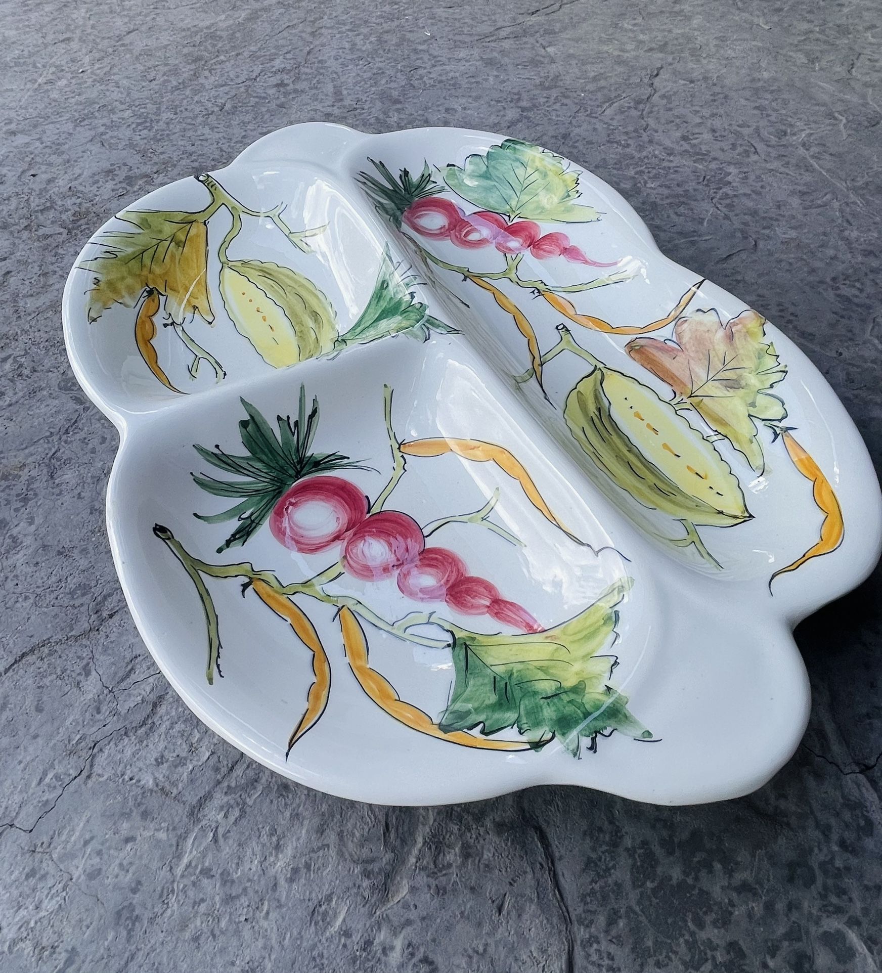 Vintage Italian Ceramic Hand Painted Divided Serving Dish Platter