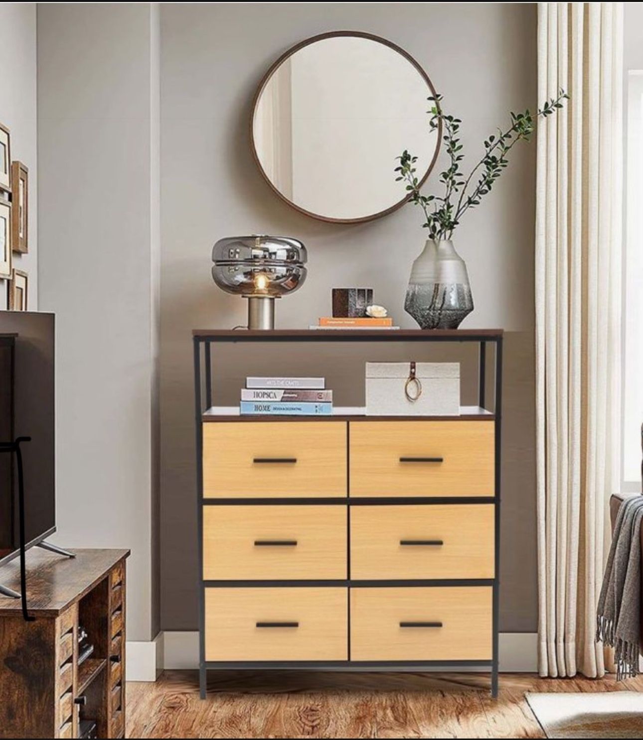Black and Brown Manufactured Wood 6-Drawer 1-Shelf Accent Chest. New in a box.