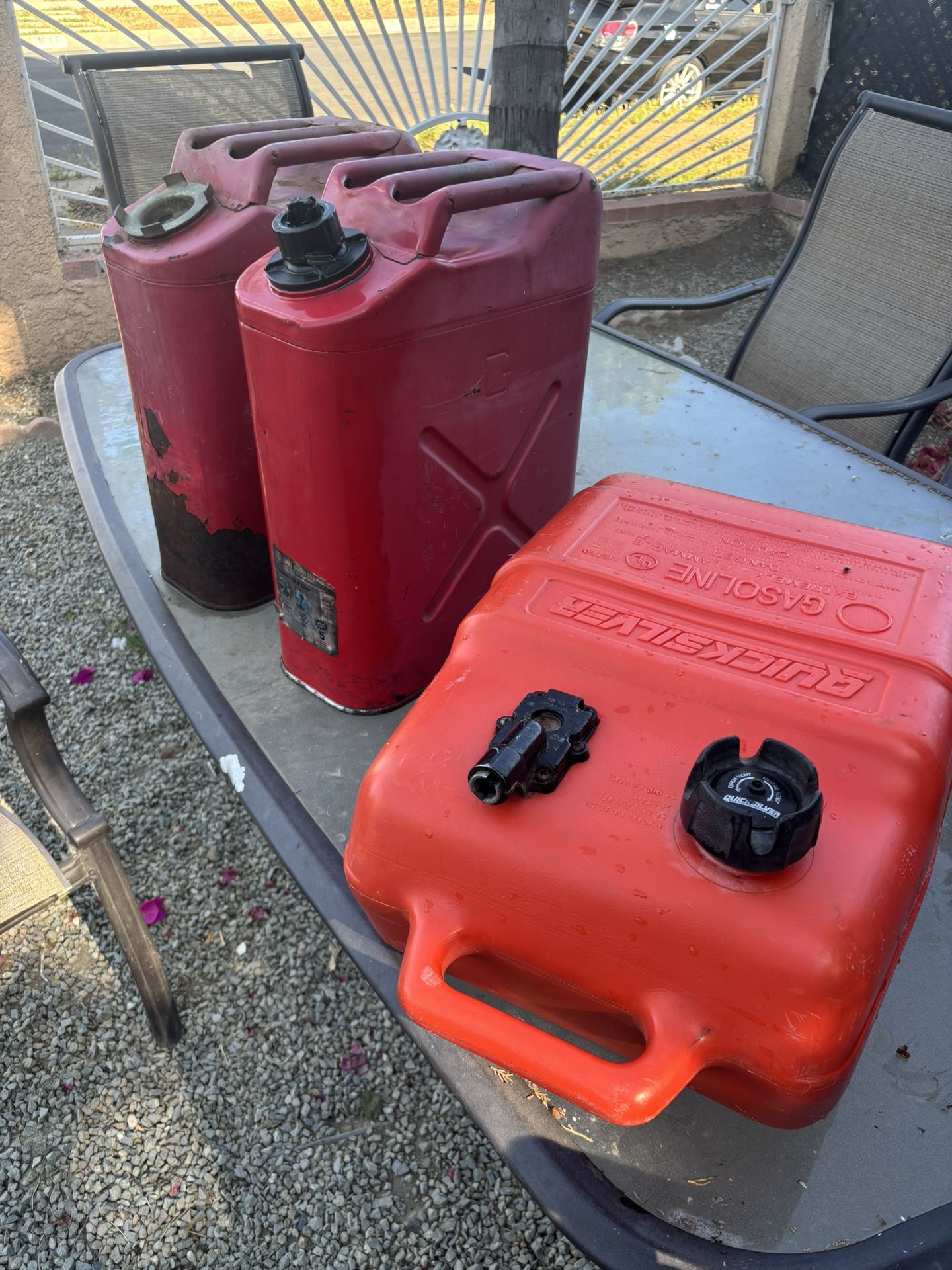 2 metal gas tanks 1 plastic tanks