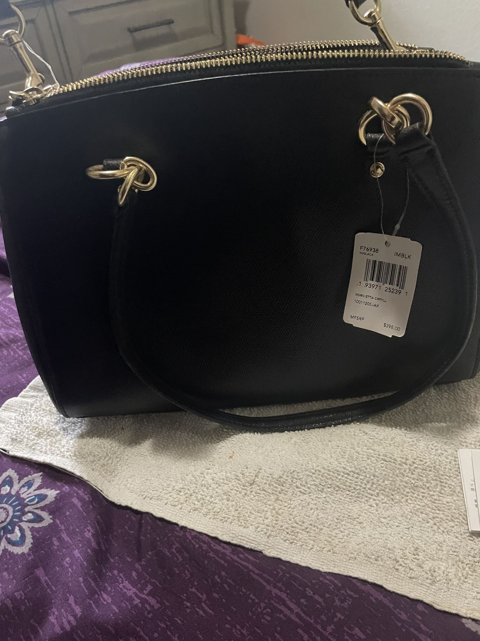 Brand new handbag has five different pockets never been used tag still on it. Great for a gift for Christmas. It’s too big for me. I want something smaller.