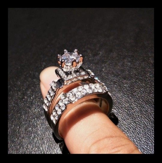 2pcs/set Women 925 Sterling Silver Plated Jewelry engagement Wedding Rings Cubic Zirconia. NEW Size 7 Smoke free home. Bundle and Save