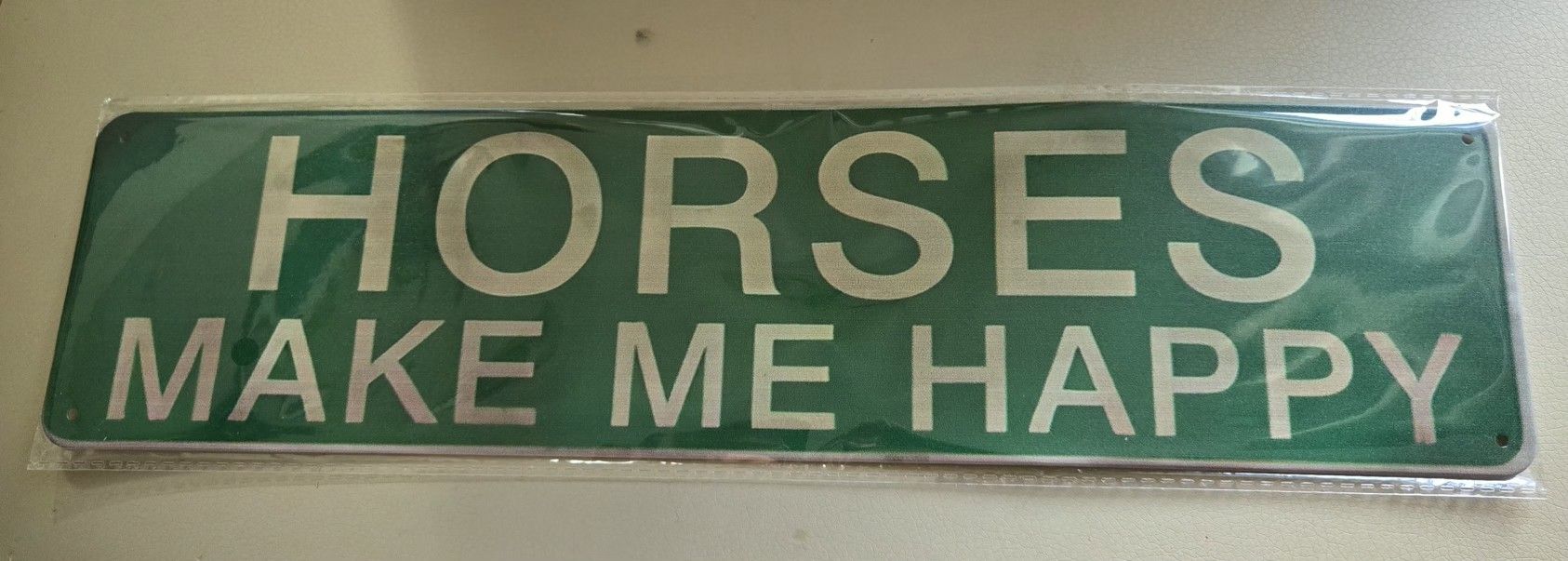 Tin "Horses make me happy" sign. 15 1 /2" x 4". New Pickup in mission valley