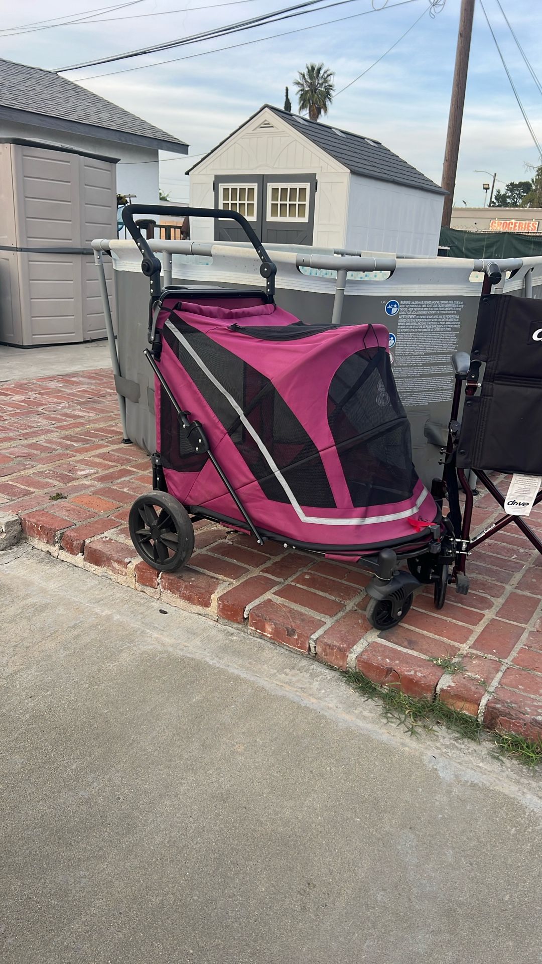 Great doggy stroller works just fine. Nothing wrong with it. Great if you want to take 3 to 4 little doggies or one big one.