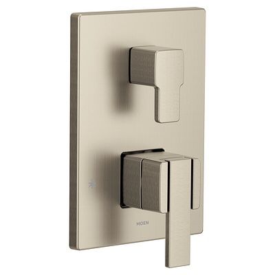 Moen UTS9011BN 90 Degree M-CORE 3-Series 2-Handle Shower Trim with Integrated Transfer Valve, Valve Required, Brushed Nickel M-CORE is shower design on your time. This valve system is simpler and faster to install, and offers additional functionality with desired style choices to create an ideal shower environment. Moen has conducted extensive research to create M-CORE, and what drives the design is a passion to make the workday more streamlined for plumbers and to give more freedom in showering functionality and design whether in new construction or remodel projects. Homeowners and designers will enjoy M-CORE's improved style and finish options including perfectly matching mixing and transfer trim, and attention to detail that reflects a desire for a dream bathroom. Once installed, M-CORE valves, with new 3-Series trim, have pressure-balancing capabilities designed to control temperature fluctuations in the event of water pressure changes in the home. They also feature volume control, allowing you to adjust the flow of water. WARM AND INVITING: Brushed Nickel finish provides a lightly brushed warm-grey metallic look VALVE REQUIRED: This trim kit requires M-CORE Mixing Valve with Integrated Transfer Valve U232 or U362, with preferred installation option, to complete installation FOR USE WITH TWO OR THREE SHOWERING DEVICES: Integrated M-CORE Transfer Valves can control 2 or 3 showering devices, a simple transfer cartridge modification changes the valve’s flow from two outlets to three outlets IMPORTANT: When using 3 Showering Devices, transfer valve cartridge must be modified. Simple Cartridge Modification changes the valves flow from two outlets to three outlets. See Transfer Valve Instructions for additional information. IMPORTANT: When using 2 Showering Devices, designated outlet 3 must be CAPPED. Caps sold separately. PRESSURE-BALANCING CAPABILITY: M-CORE valves, with 3-Series trim, have pressure-balancing capabilities designed to control temperature fluctuations in the event of water pressure changes in the home