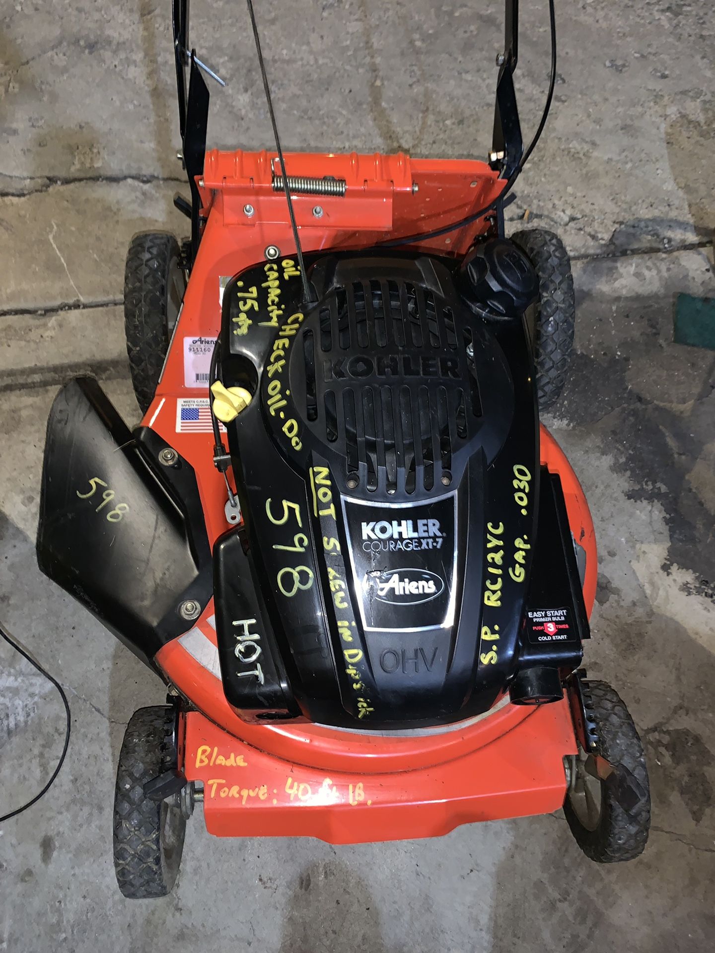 No start......I had this lawnmower running last year but this year it’s hard to start...A couple of bolts are missing in bracket...If it starts at all in excellent shape.. no bag also filter cover is missing... 21 inch cut.
