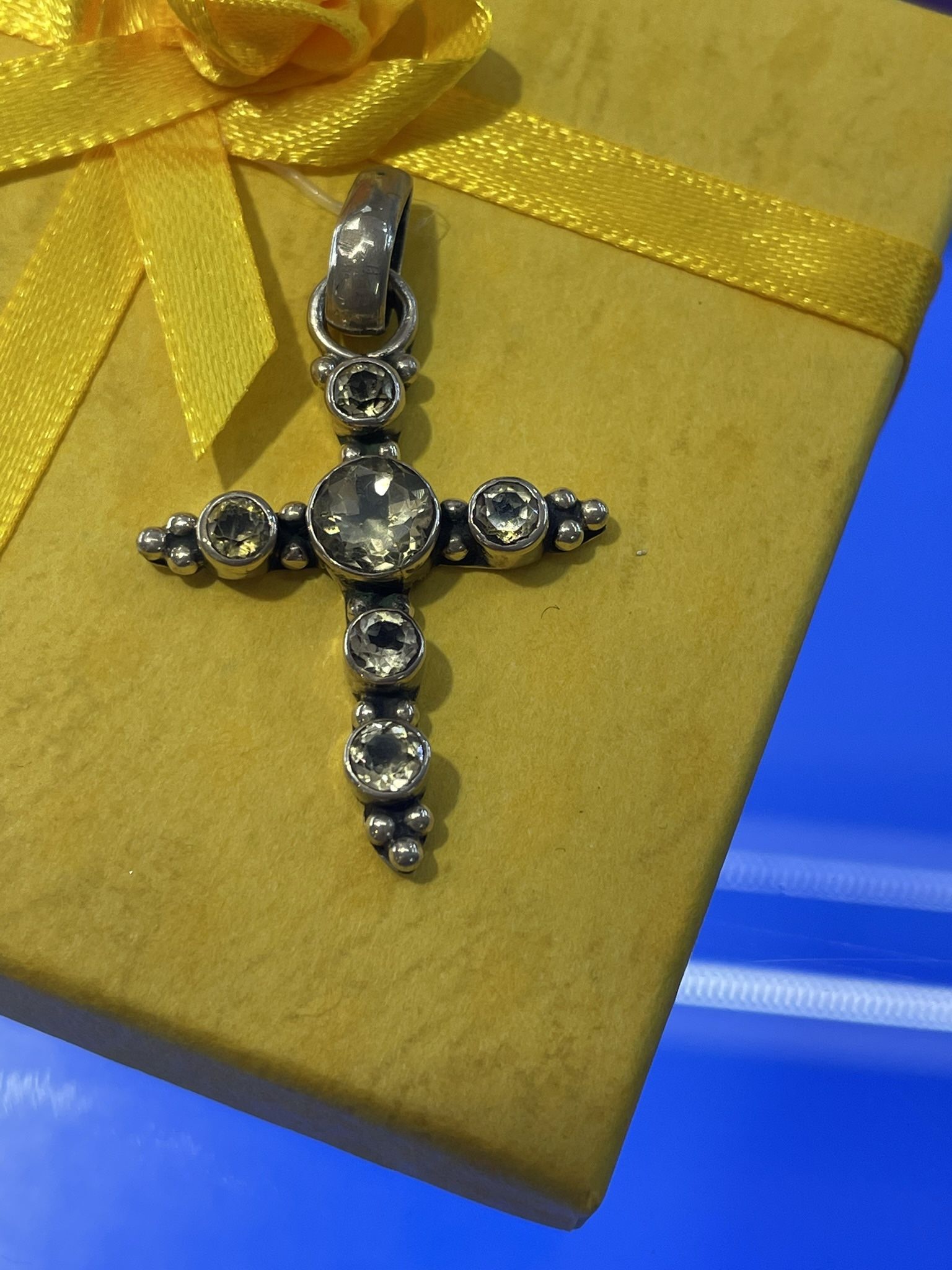 Citrine Cross Handmade Sterling Silver NEW 1.75 “