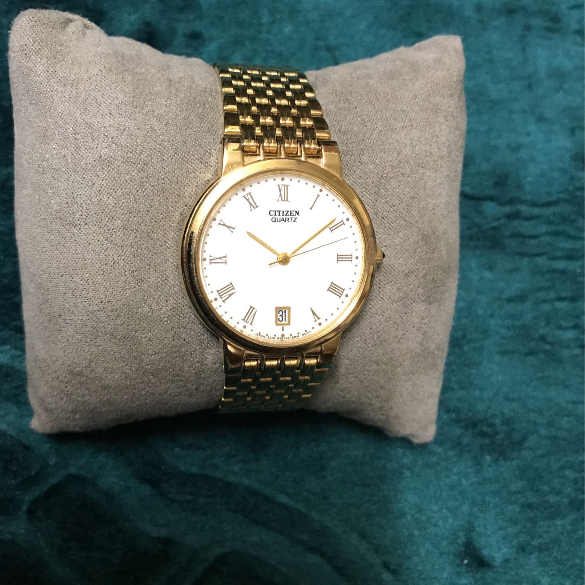 Citizen Vintage Unisex Slim Quartz 5510-S19546 SMW 2094455-5 Gold Plated Date Bracelet Watch
